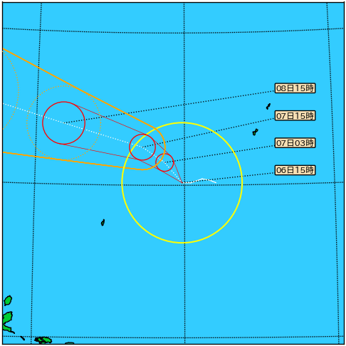 台風の中心は、24時間後の7日3時には